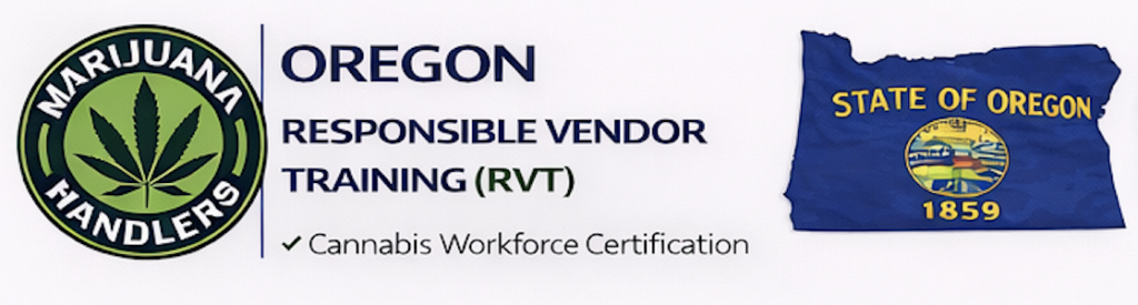 - Oregon • Marijuana Handlers™ – Cannabis Compliance & Responsible Vendor TrainingOREGON Responsible Vendor Training (RVT) by Marijuana Handlers™. Covers OREGON cannabis laws, compliant operations, and employee responsibilities for licensed establishments (aligned with ORS Chapter 475C & OAR 845-025 (OLCC Division 25 Rules) rules and regulations). Complete the course and pass the 70% final exam to access your certificate.15